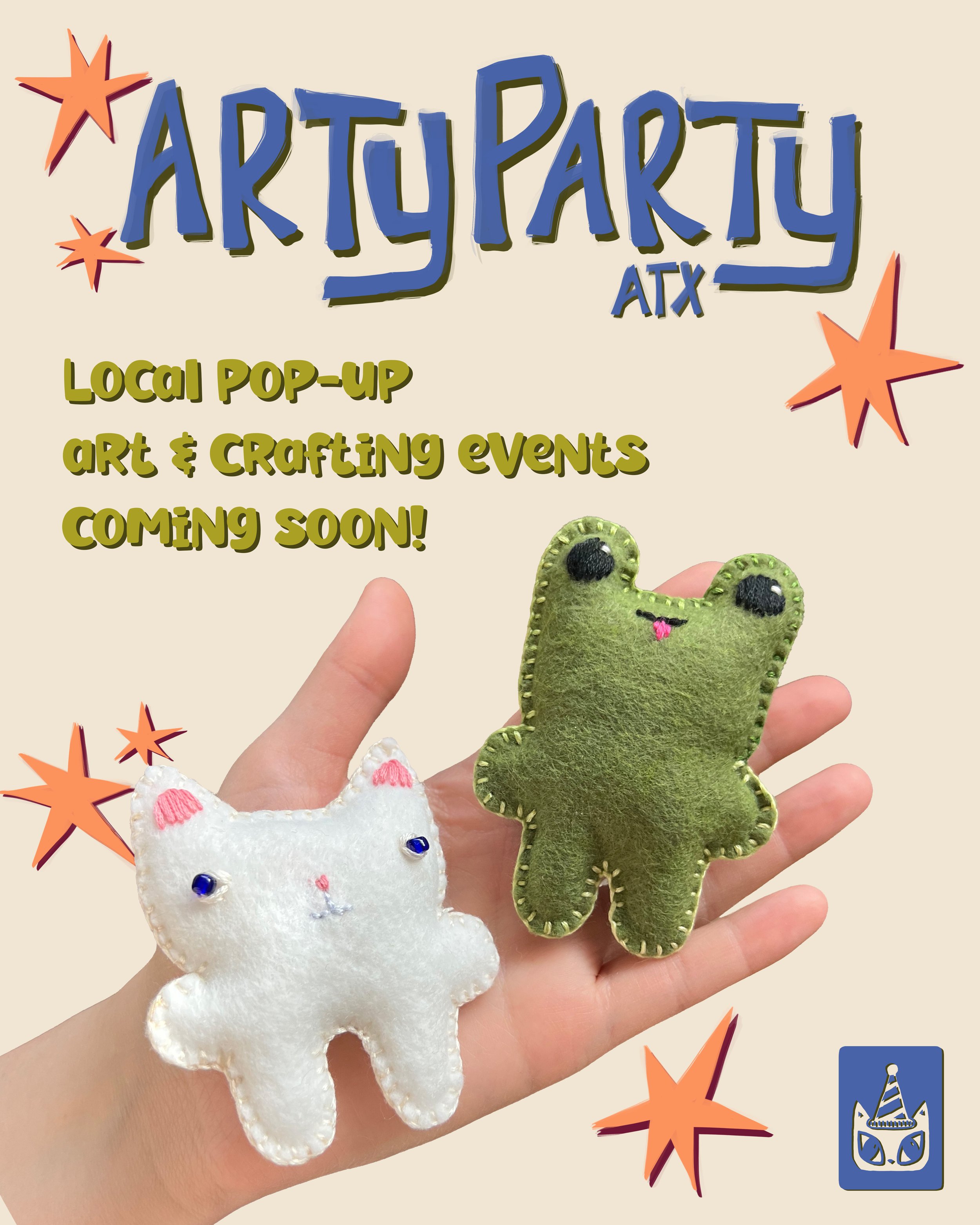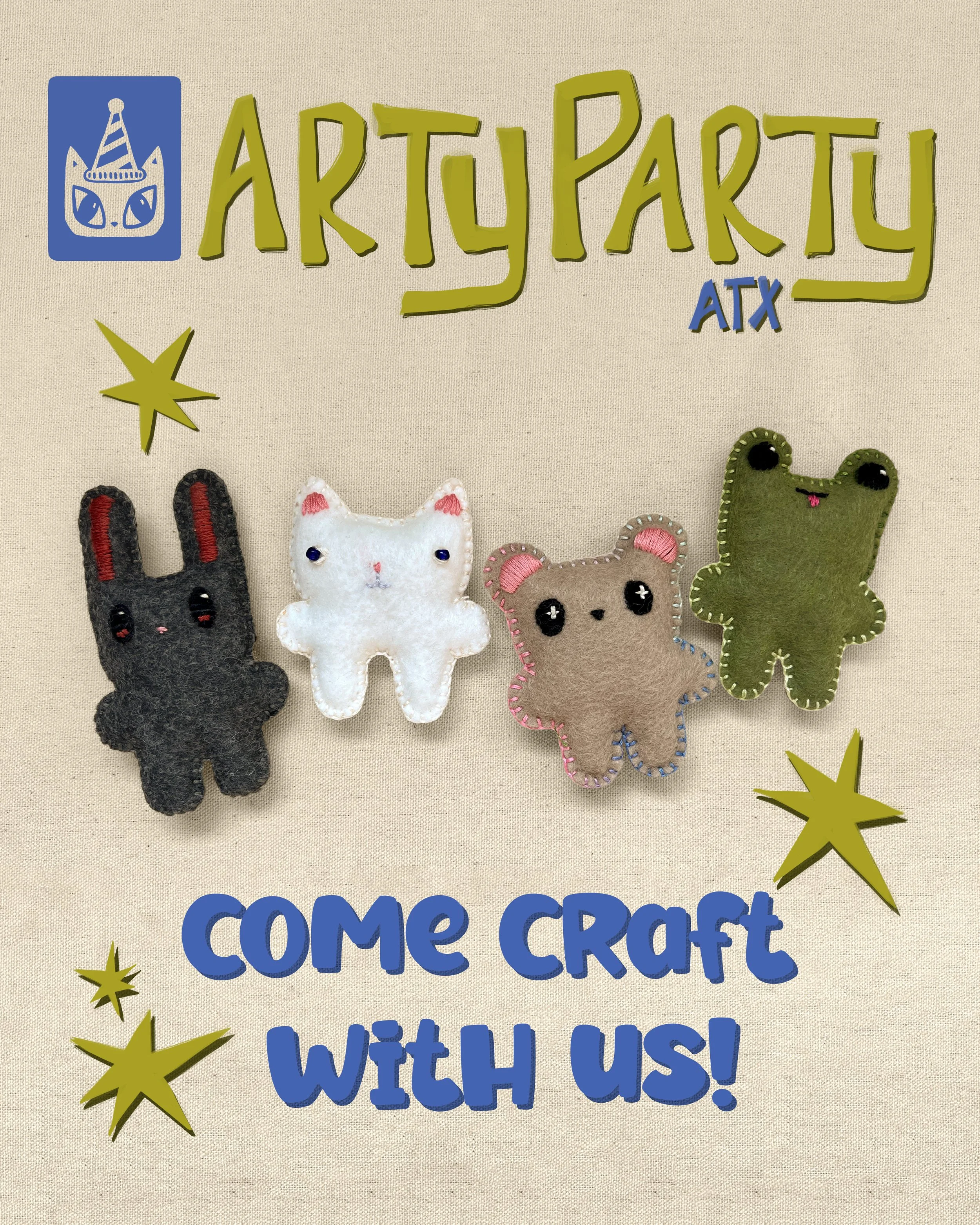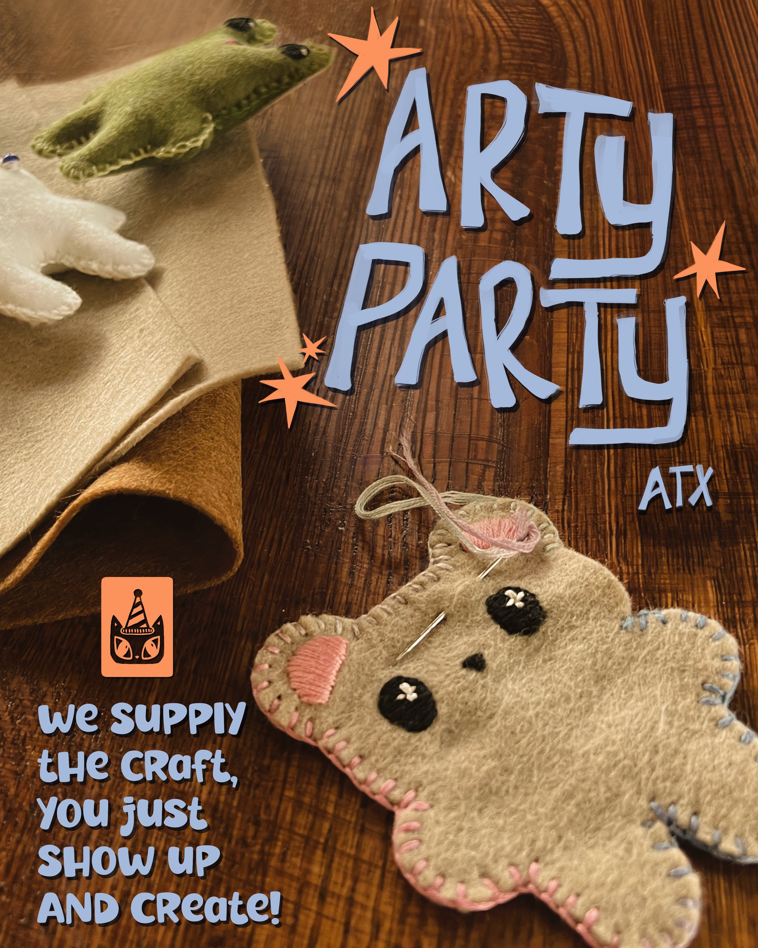Get out of the house and over to our Arty Party!Arty Party ATX hosts pop-up crafting events where you can create, meet new people, and leave feeling lighter. Come Craft With us! Upcoming Events Chat & Craft We provide the materials, the instructions, and the space. You just show up and create! Tickets Upcoming Events